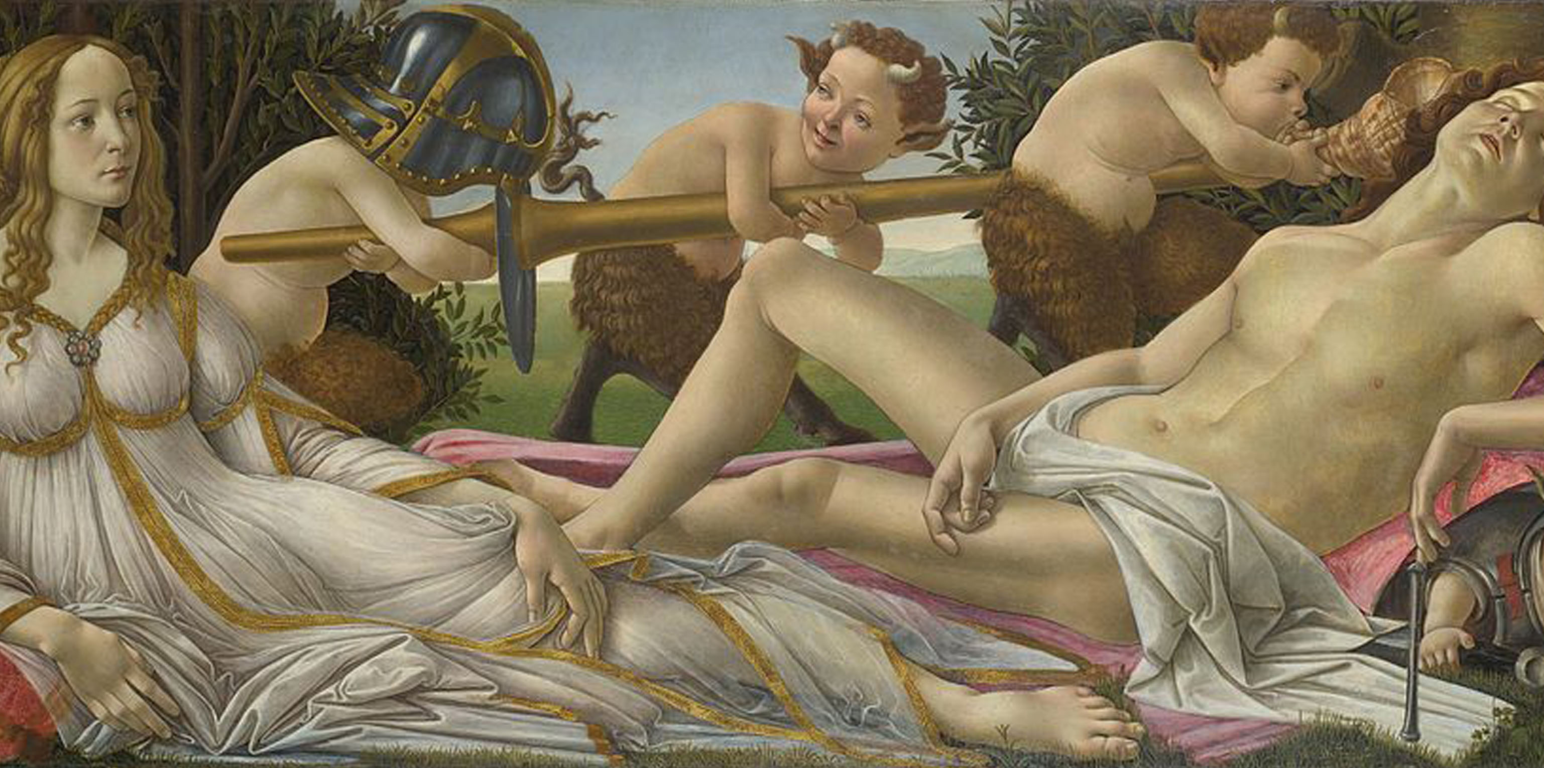 Marte y Venus: Es una pintura que representa el contraste entre el dios de la guerra y la diosa del amor, que según la leyenda tuvieron una relación amorosa. En la obra se ve a Marte dormido y a Venus despierta, rodeados por unos traviesos sátiros que juegan con las armas del dios. Botticelli pintó esta obra para otro miembro de los Médici, probablemente Giuliano di Piero de Médici, que era el hermano menor de Lorenzo el Magnífico. La obra tiene un tono humorístico y moralizante, al mostrar las consecuencias del amor ilícito y la superioridad de Venus sobre Marte. Puedes ver esta obra en la National Gallery de Londres.